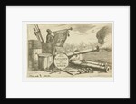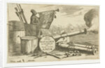 Title page with the equipment of a warship and a trumpet player, Reinier Nooms, 1652 - 1656