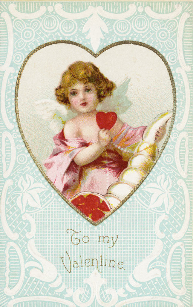 Product details To My Valentine Postcard of Cupid Holding a Heart
