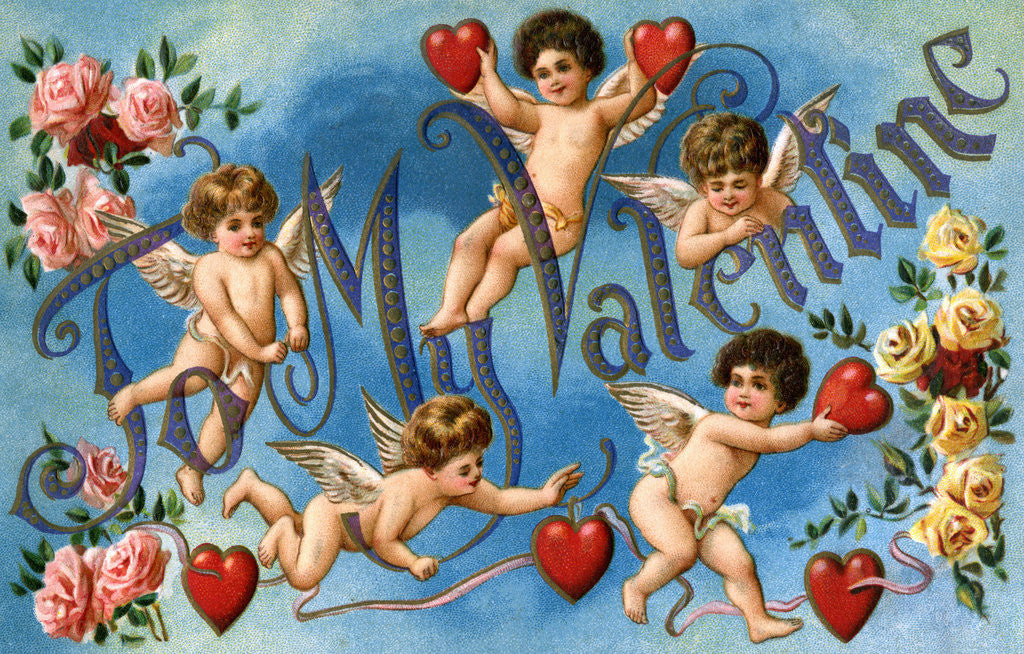To My Valentine Postcard with Winged Cherubs and Hearts