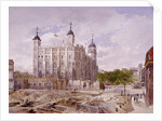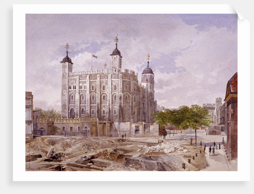 View of the White Tower at the Tower of London, Tower Hamlets, London, 1883. In the foreground is the site for the new Ballium Wall.