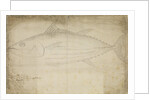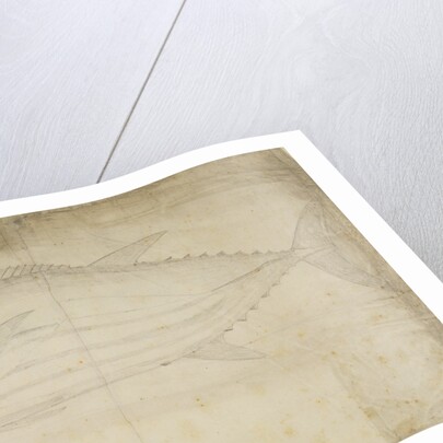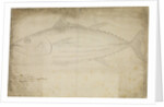Side view of a variety of Atlantic tuna [Thunnus], inscribed below in ink: 'these Fishes were taken and drawn : and given to the R. Society by Capt. Halley November 6: 1700.' At a meeting of the Royal Society on 6 November 1700: 'Dr. Sloane shewed a book of Albegetti's of artillery, and done according to Gallilae...Capt. Hally was desired to give the So: an acct. of this book in writing. The same produced several sketches of fishes, and of the Batavian Islands, for which he was thanked, and ye sketches ordered to be put into the Repository. The fishes were of two sorts of flying fish &c.' Royal Society Journal Book Original, JBO/10/198. The astronomer Edmond Halley was commissioned captain in 1698 commanded the voyages of HMS Paramour in the South Atlantic.