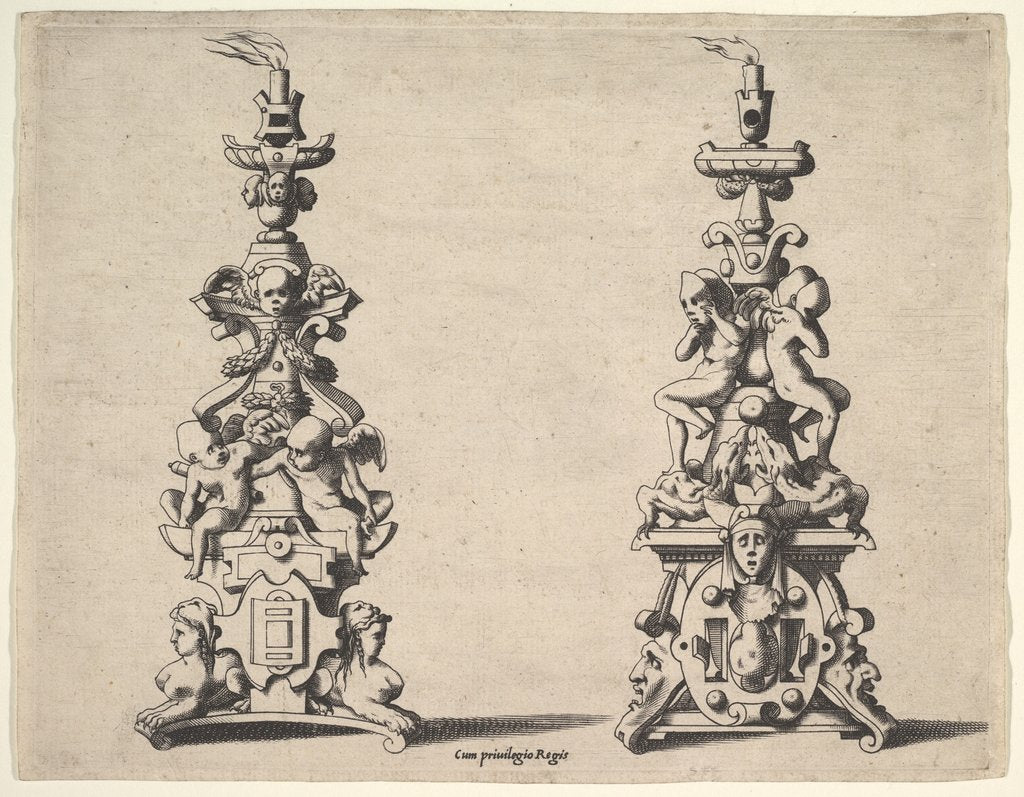 Two candlestick designs, ca. 1550-60. Possibly by Pierre Milan (French, active 1537-40)