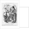 'Two Drops of Comfort', 1871. A publican holds up a notice detailing the latest proposed government measures whilst one of his regulars keeps a firm grip on his beer with one hand, whilst he daintily grips his chaser with the other. The cabby's long whip rests in the crook of his arm. At this time Henry Austin Bruce was Home Secretary and this cartoon relates to his new Licensing Bill. This proposed that people should have access to a selection of respectable public houses. It also proposed that local magistrates should assume licensing responsibility as well as determining the numbers of public houses in their areas. Regulations of opening hours for both rural and urban areas were included in the Bill. This Bill met with considerable opposition from an increasingly powerful temperance movement, as well as from drinkers and breweries. From Punch, or the London Charivari, April 15, 1871.