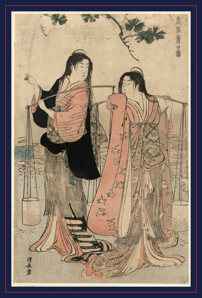 Shiokumi, Salt Maidens. [1784 or 1785], 1 Print : Woodcut, Color ; 37.8 X 24.7 ., Print Shows Two Women Carrying Buckets of Salt Suspended from Shoulder Poles.