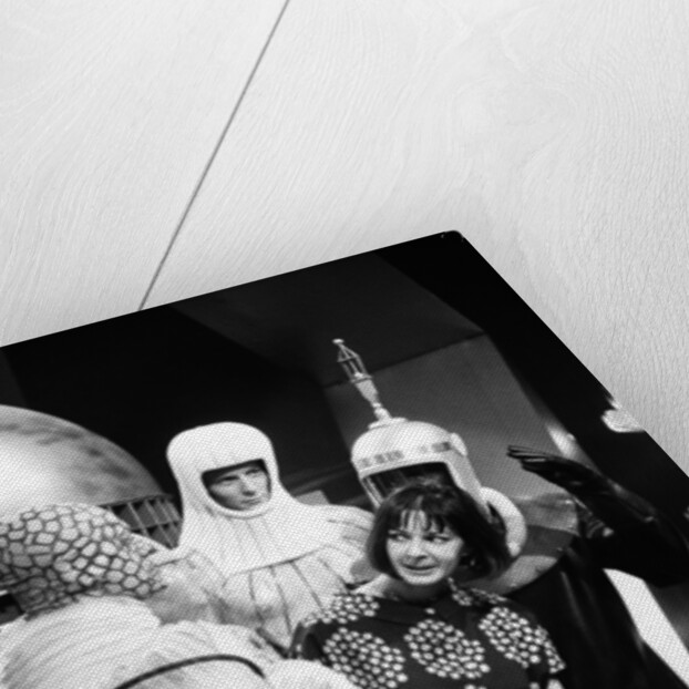 Verity Lambert on the set of Doctor Who, where 'The Beasts from UGH (United Galactic Headquarters) was being filmed. Producer Verity is scared by her own creations. 6th August 1965.