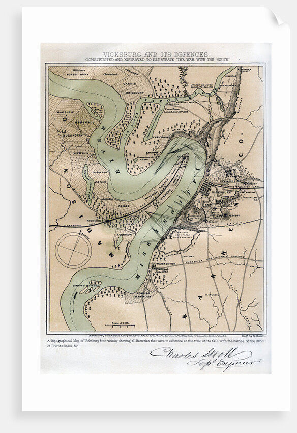 Vicksburg, Mississippi, and its defences, 1862-1867. The Union capture of the fortress of Vicksburg in July 1863 gave them control of the Mississippi River and split the Confederacy in two. An engraving from volume II of The War with the South : a History of the Late Rebellion, by Robert Tomes, Benjamin G Smith, New York, Virtue & Yorston, 3 Volumes, 1862-1867.