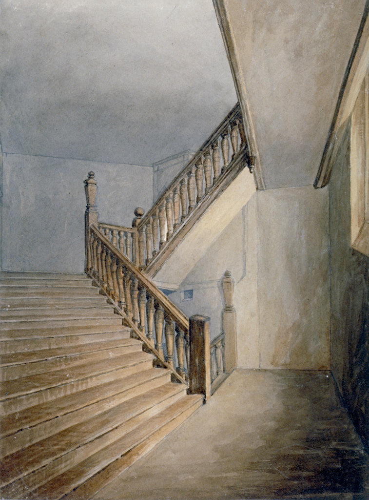 View of a staircase in Winchester House, Winchester Place, London, c1830.