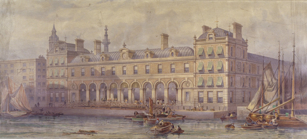 Product images of View of Billingsgate Market with figures and boats in the foreground, London