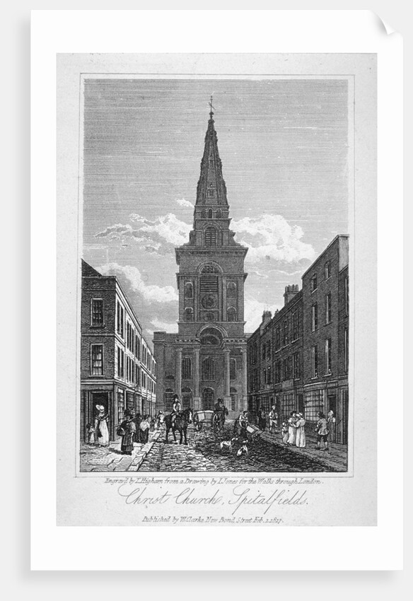 View of Christ Church, Spitalfields, London, 1817. Built between 1714 and 1729, the church was designed by Nicholas Hawksmoor. It is regarded as possibly the finest of the so-called 'Commissioners' Churches' built after 1711 by the Commission for Building Fifty New Churches.