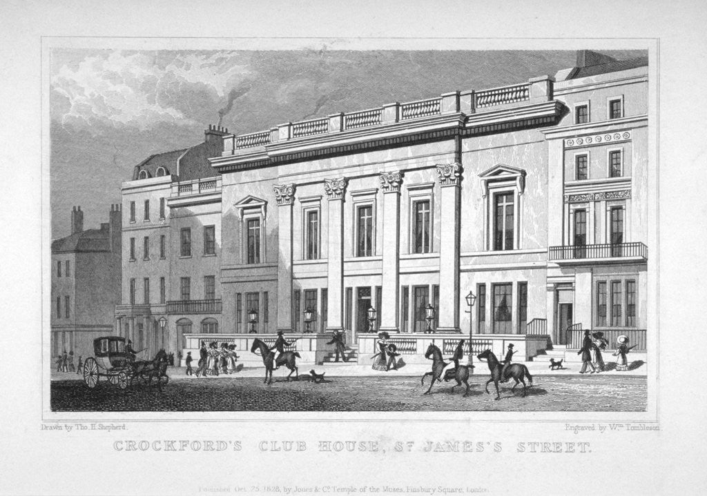View of Crockford's Club on St James's Street, Westminster, London, 1828.