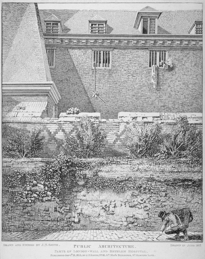 View of parts of London Wall and Old Bethlehem Hospital (Bedlam), City of London
