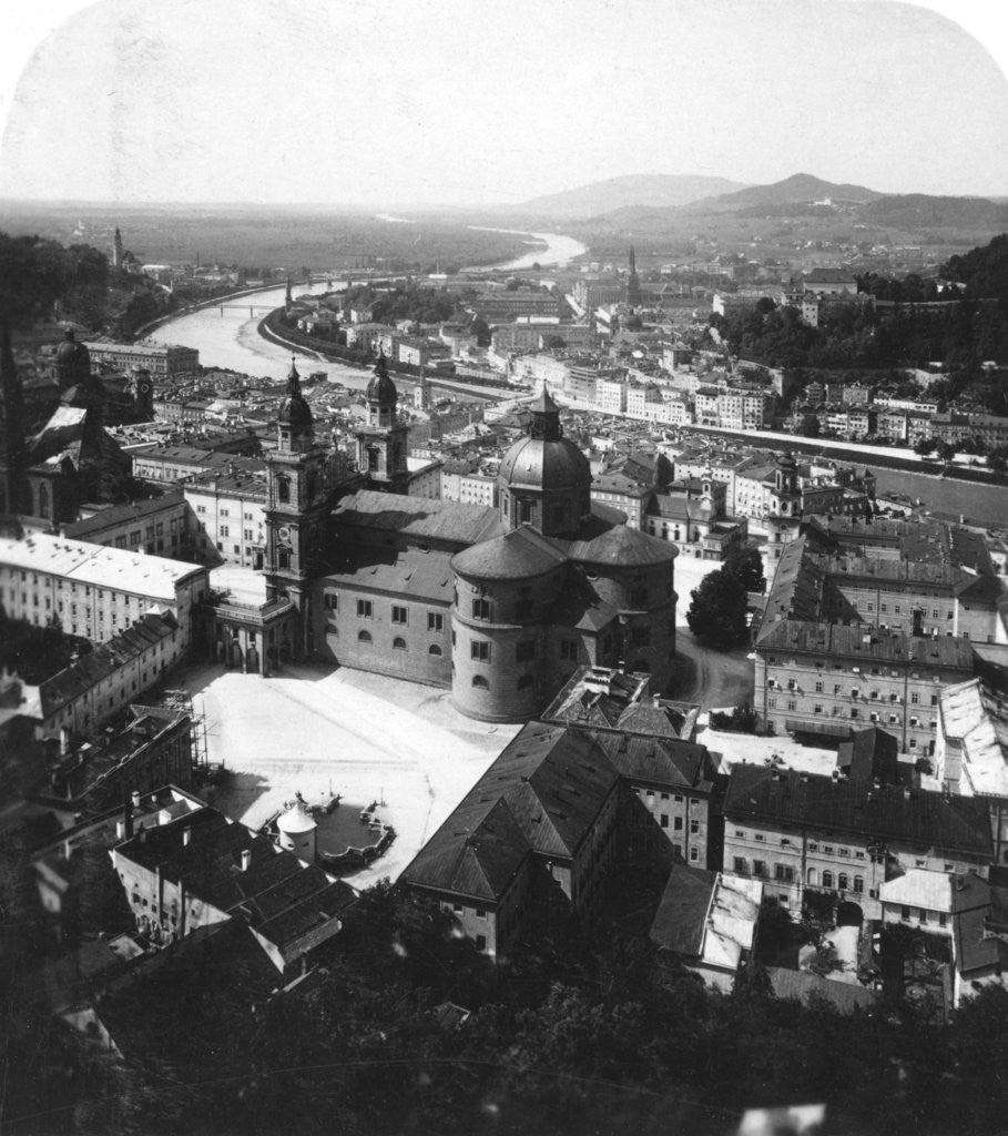 View of Salzburg from the Hohensalzburg Fortress, Salzburg, Austria, c1900. Stereoscopic card.