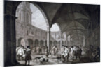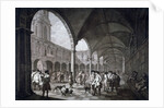 View of the courtyard in the Royal Exchange with merchants and brokers, City of London