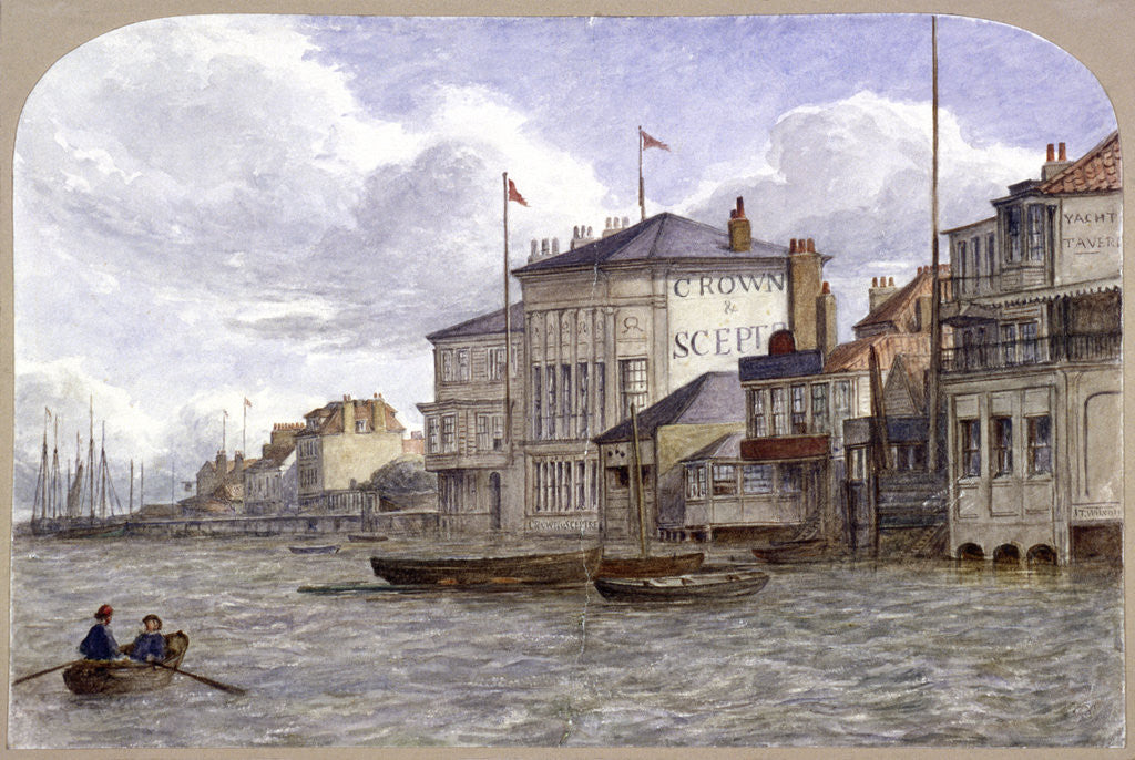 View from the River Thames of the Crown and Sceptre Inn, Greenwich, London, 1870.