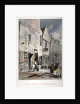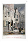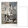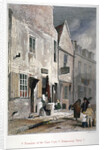 View of the east gate remains of the Abbey of St Saviour, Bermondsey, London, 1851. Also showing figures and household items on the street.