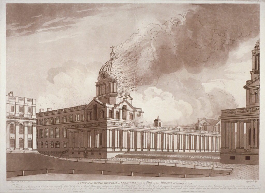 View of the fire at Greenwich Hospital, London, on the morning of 2nd January