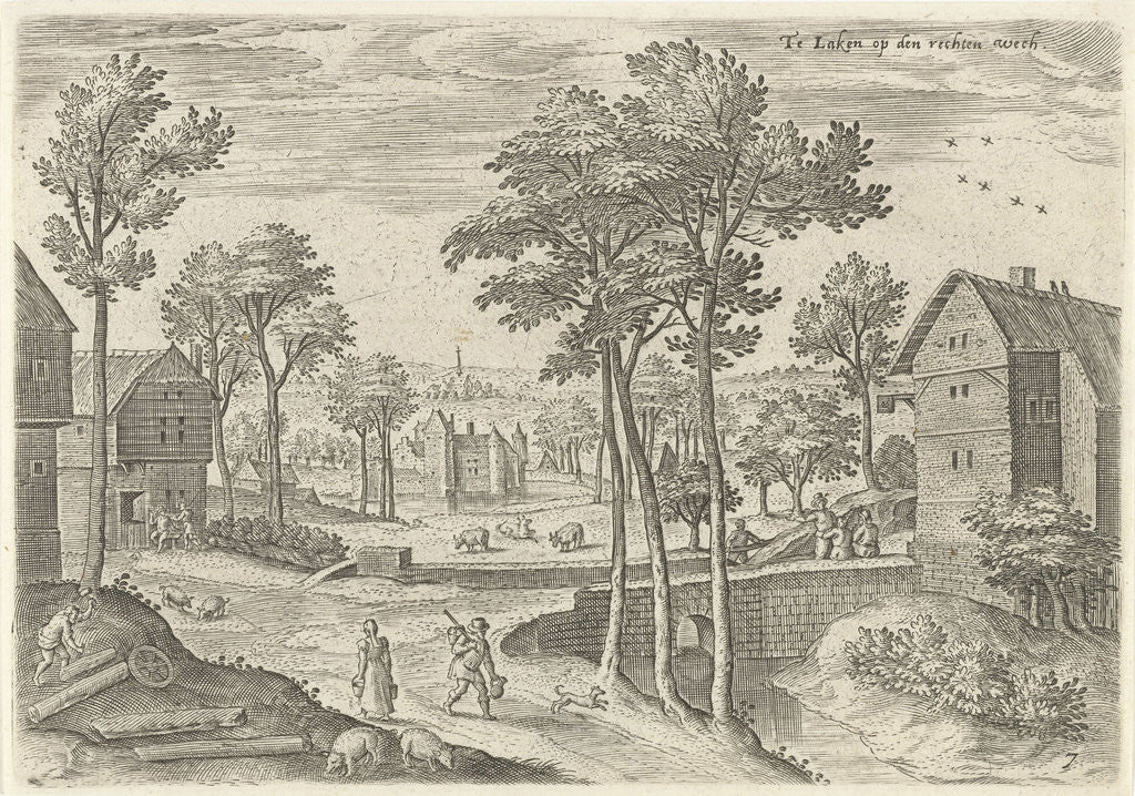 View of the main street of Laeken, Belgium, Hans Collaert (I), Hans Bol, Claes Jansz. Visscher (II), 1530 - 1580