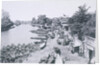 View of the River Thames and boats, c1900. Taken from Richmond Bridge, the view shows the quite river with a flotilla of rowing boats moored at the quayside. Other boats are drydocked next to various buildings, most probably boatyards.