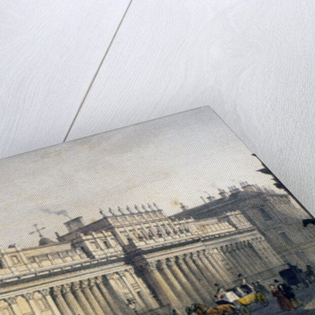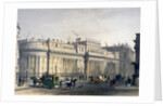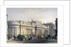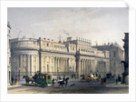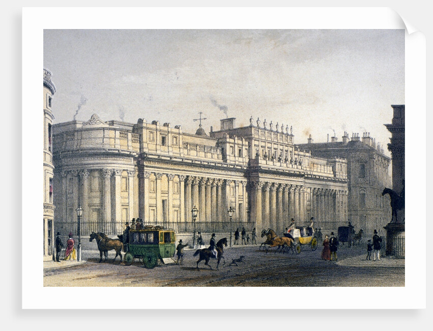 View of the Bank of England, City of London, 1854; with a street scene and horse-drawn carriages.