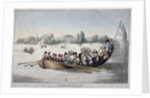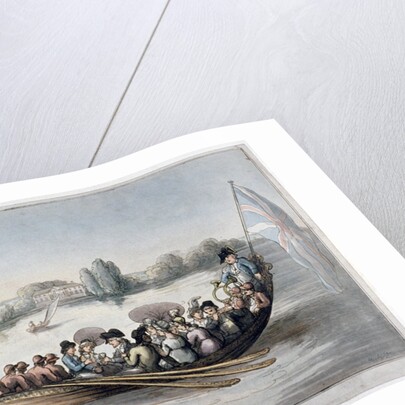 View showing figures in a rowing boat on the Thames at Chelsea Reach, London, 1799. Chelsea Physic Garden can be seen on the far shore.