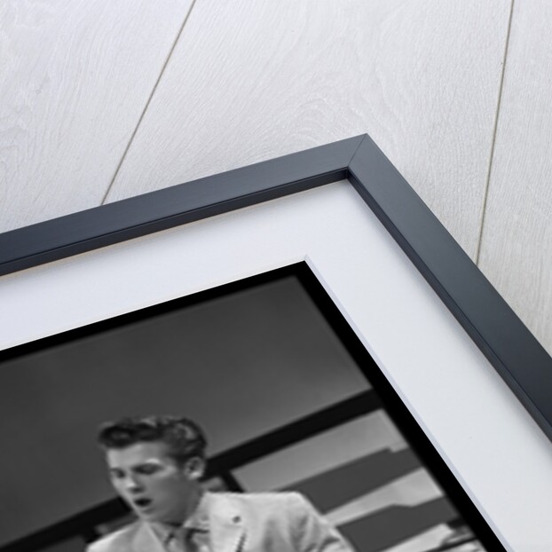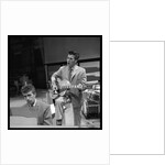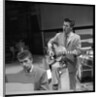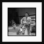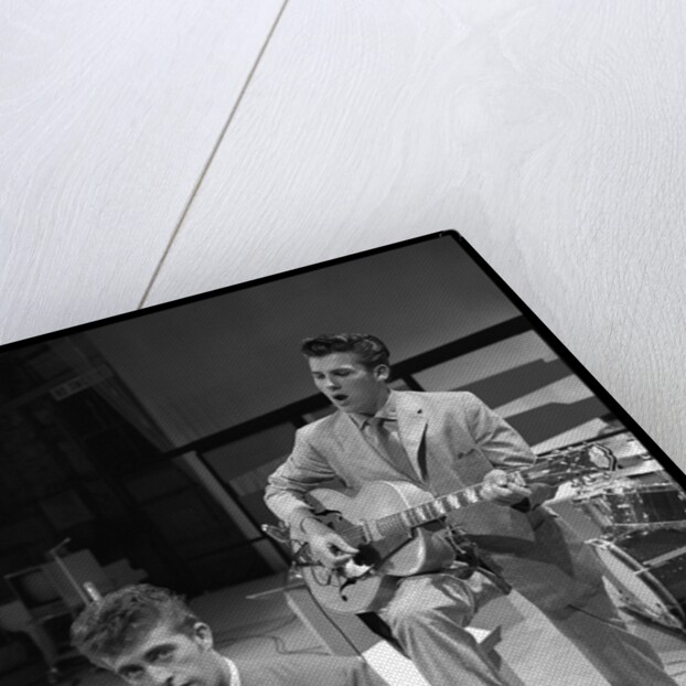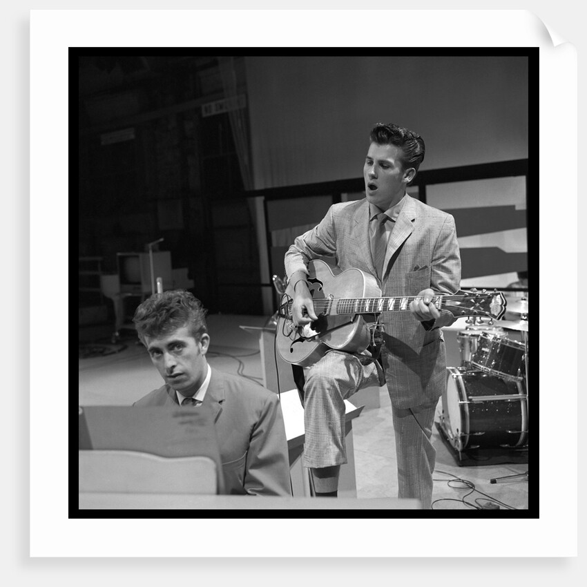 Vince Eager (b.1940) playing a guitar on The Oh Boy TV Show, photo Harry Hammond (1920-2009). Black and white photography. UK, 1958.