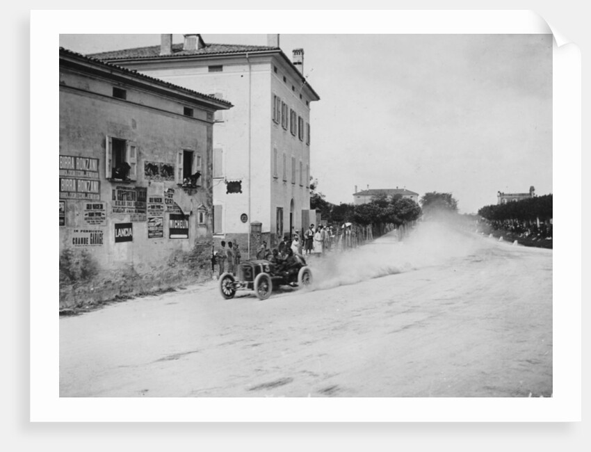 Vincenzo Trucco driving a De Dietrich, in the Coupe Florio, Bologna, Italy, 1908. Passing through the town of Persiceto. This race was for Grand prix type cars only.