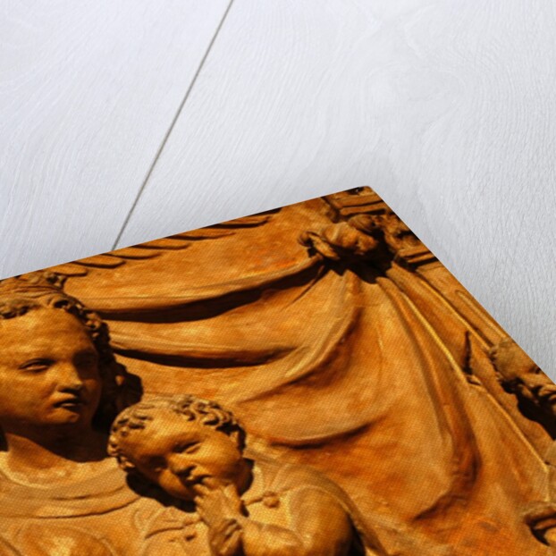 Virgin and Child, with St John the Baptist and St James the Greater, detail. Terracotta. Florence, Italy, 15th century.