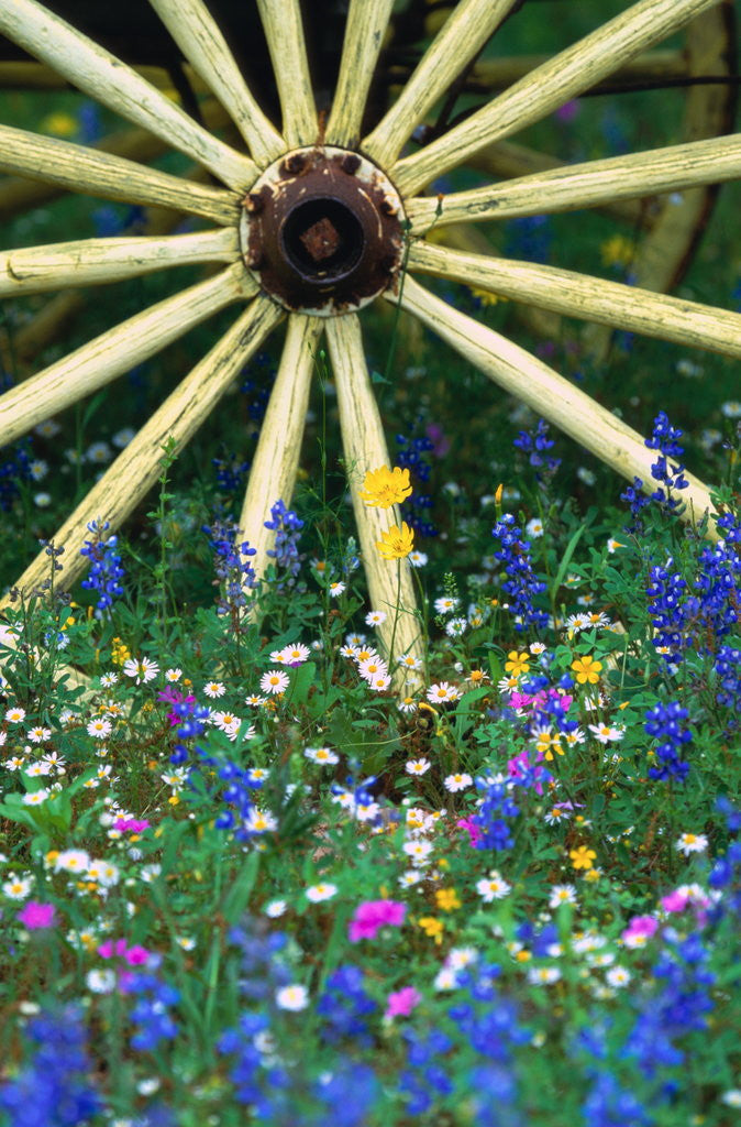 Product images of Wagon Wheel Sitting Among Wildflowers
