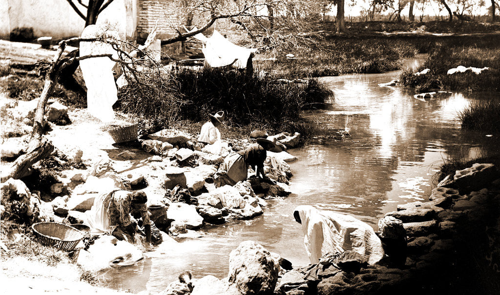Washing at the hot springs, Jackson, William Henry, 1843-1942, Laundry, Rivers, Springs, Mexico, Aguascalientes (State), Aguascalientes, 1880