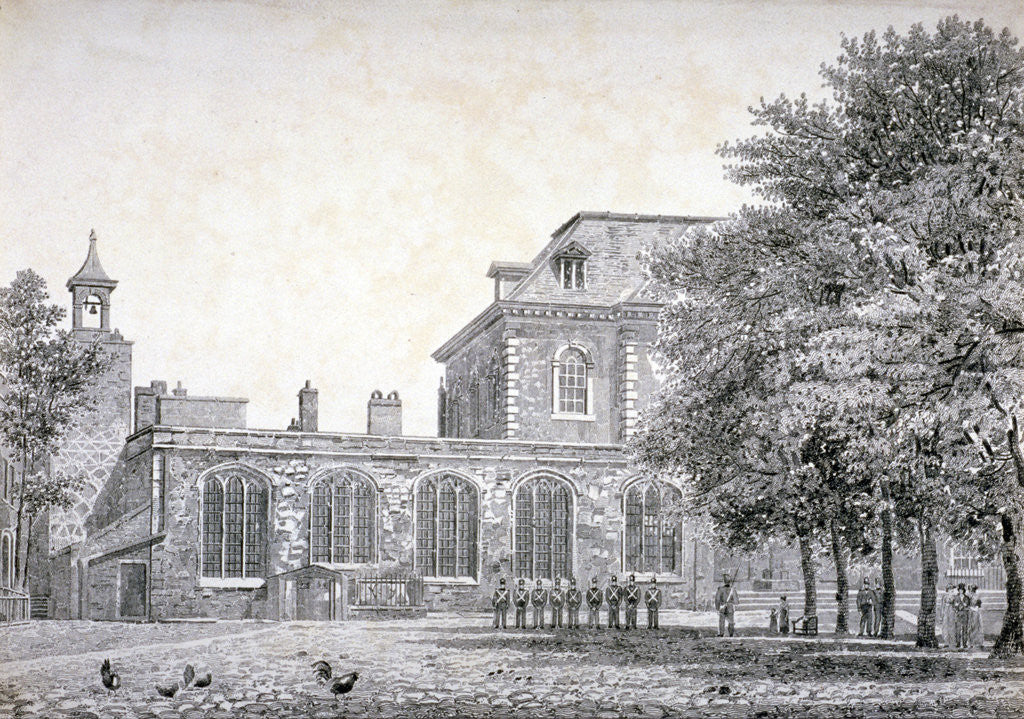 West view of the Chapel of St Peter ad Vincula, Tower of London, c1800. The chapel was built for the use of the Tower's garrison, servants and prisoners. It was rebuilt in 1519 by Henry VIII.