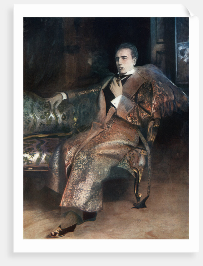 William Gillette in Sherlock Holmes, c1902. American actor, playwright and stage-manager William Hooker Gillette (1853-1937) in a production adapted from the work of Arthur Conan Doyle.