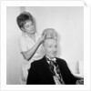 Actor William Hartnell - the first Doctor - pictured in dressing room as mke up artist Sonia Markham applies the finishing touches to his face makeup & wig at BBC Television Centre, Wood Lane 9th January 1966. This saturday (15th January) will see the airing if the 100th Dr Who Episode.