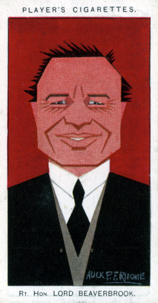 William Maxwell Aitken, 1st Baron Beaverbrook, (1879-1964), British/Canadian statesman and newspaper proprietor, 1926. Cigarette card with straight-line caricature, issued by John Player & Sons.