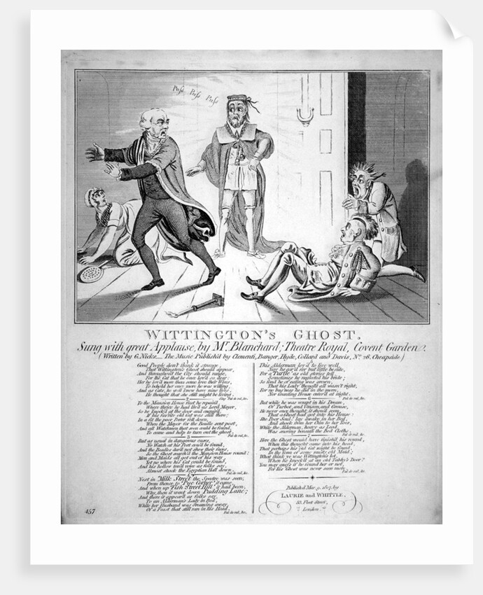 'Wittington's Ghost', 1807. The ghost of Dick Whittington appearing at Mansion House in search of his cat.