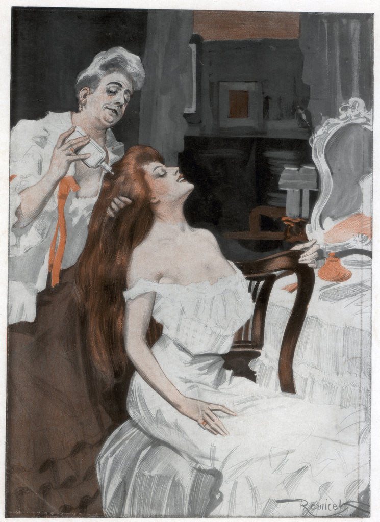 Woman having her hair done, late 19th-early 20th century.