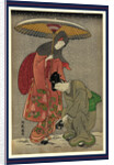 Geta No Yukitori, Removing Snow from One's Clogs. [1776, Printed Later], 1 Print : Woodcut, Color., Print Shows a Woman Holding an Umbrella While a Female Servant Removes Snow from Her Geta.