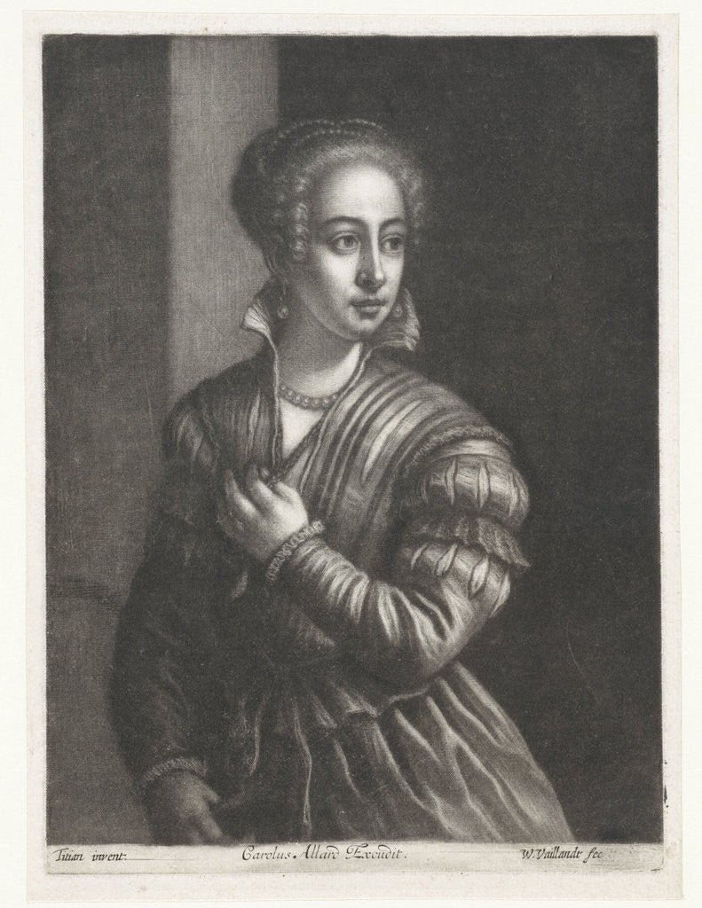 Woman in Venetian dress, Wallerant Vaillant, Carel Allard, 1673 - 1709