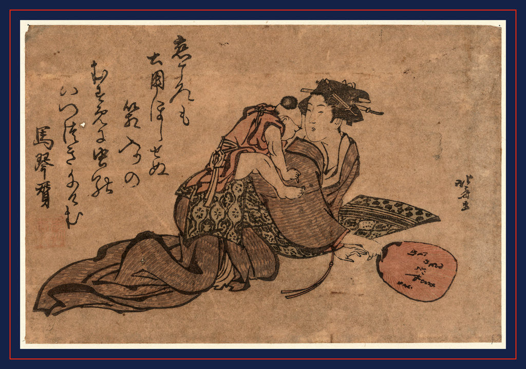 Hahaoya Ni Umanori Suru Yoji, a Child Riding His Mother Like a Horse. [Between 1804 and 1818], 1 Print : Woodcut, Color ; 12.4 X 18.6 ., Print Shows a Woman on Her Hands and Knees with a Child Climbing or Riding on Her Back.