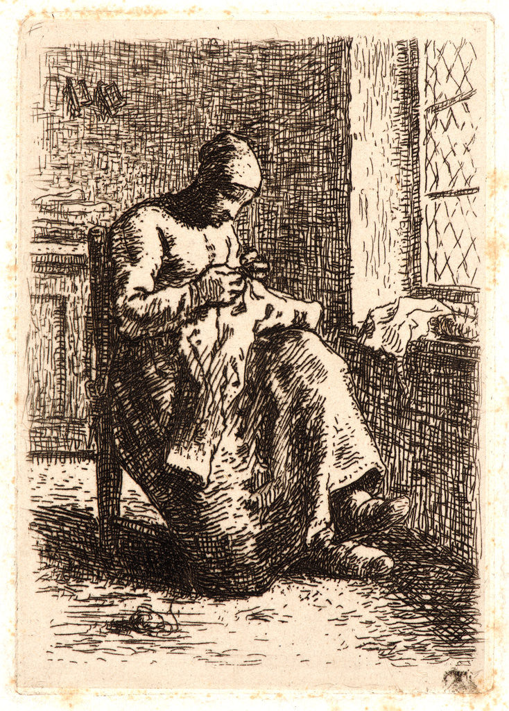 Jean-François Millet (French, 1814 - 1875). Woman Sewing (La Couseuse), ca. 1855-1856. Etching printed in dark brown ink on chine collé