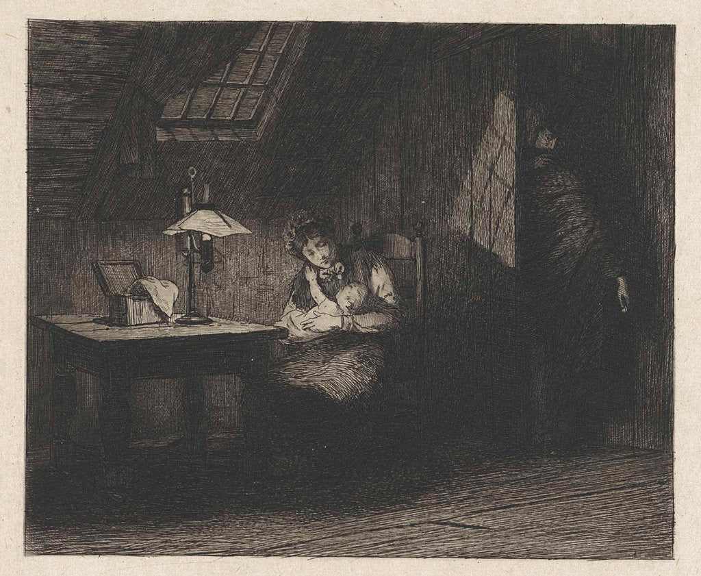 Woman with child by lamplight, Willem Steelink II, 1866-1928
