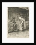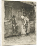 Woman with small child is sitting at home working for old man, Bernardus Johannes Blommers, 1855 - 1914