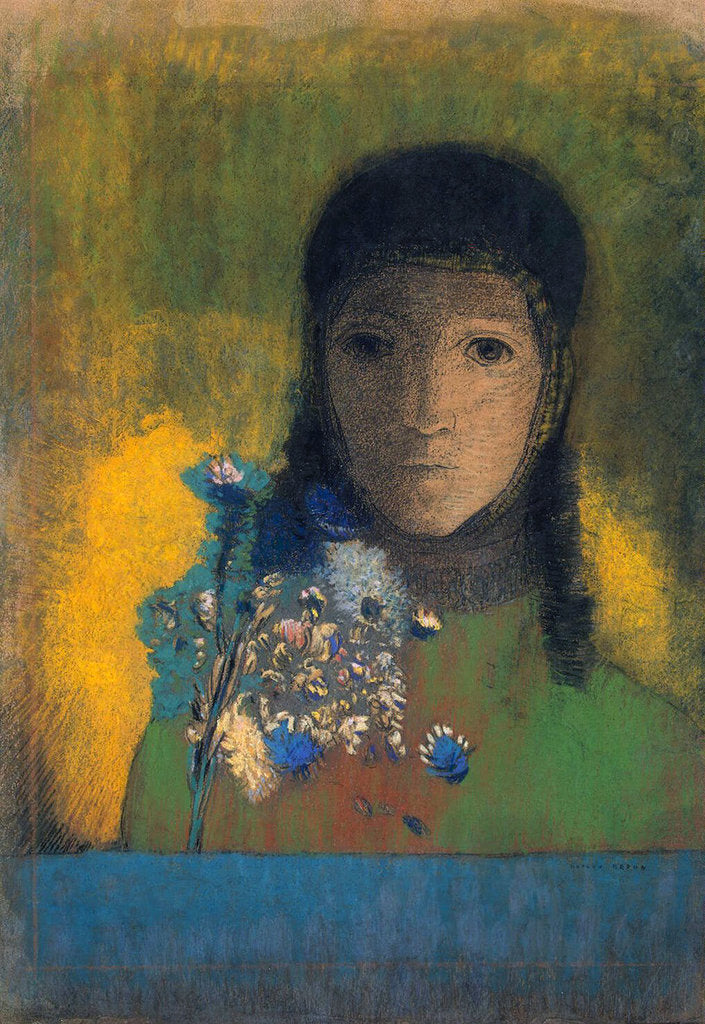 Woman with Wildflowers', c1900. Redon, Odilon (1840-1916). Found in the collection of the State Hermitage, St. Petersburg.