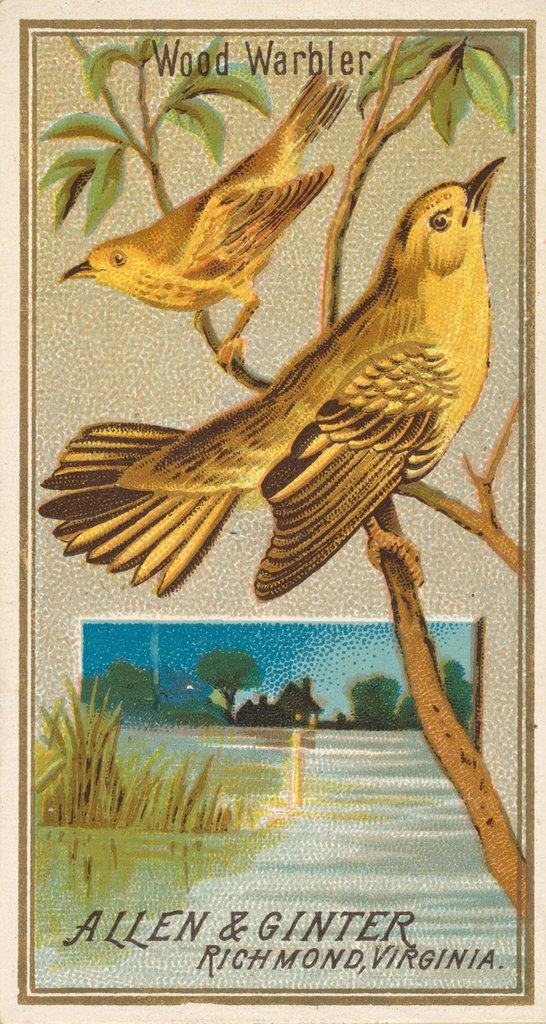 Wood Warbler, from the Birds of America series (N4) for Allen & Ginter Cigarettes Brands, 1888.