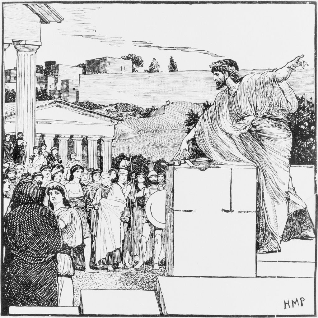 Product details Woodcut of Demosthenes Speaking to Outdoor Assembly