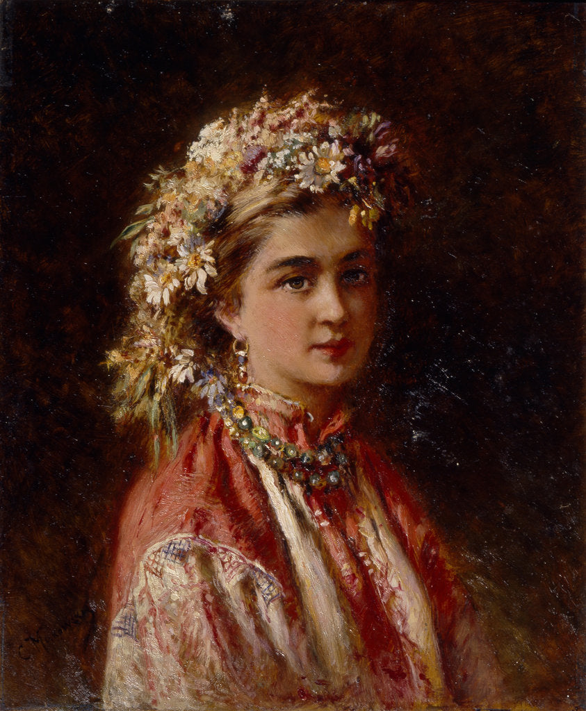 Young girl with flower garland. Found in the collection of the Regional Art Museum, Gorlovka.