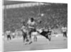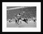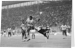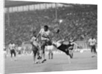 1974 World Cup First Round Group Two match at the Westfalenstadion, Dortmund, West Germany. Zaire 0 v Scotland 2. Denis Law in action in the Zaire penalty area closely challenged by Mwanaza Nel Nokumbo. 14th June 1974.